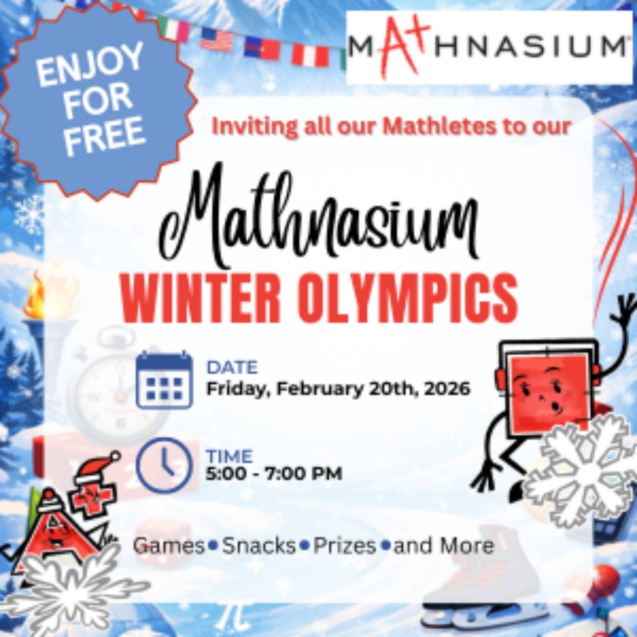 Get ready to challenge your brain and have a ton of fun at the Mathnasium Winter Olympics Game Night!