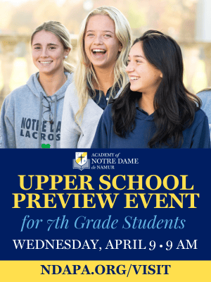 Academy of Notre Dame de Namur: A world-class Catholic, college-preparatory education for your daughter is right around the corner at the Academy of Notre Dame de Namur! From a cutting-edge STEM curriculum and burgeoning dance program to championship athletic teams and the Center for Global Leadership, which enabled over 200 students to participate in academic trips in the US and abroad in 2024, opportunities abound for girls in grades 6-12 to find their purpose and unlock their potential. Discover for yourself the vibrant academic experience at Notre Dame and watch your daughter thrive!